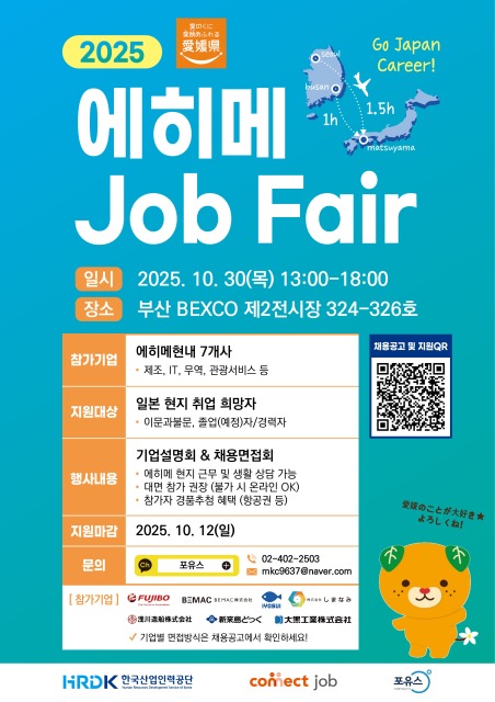 에히메현은 일본 취업을 희망하는 한국인 구직자를 대상으로 오는 10월 30일,