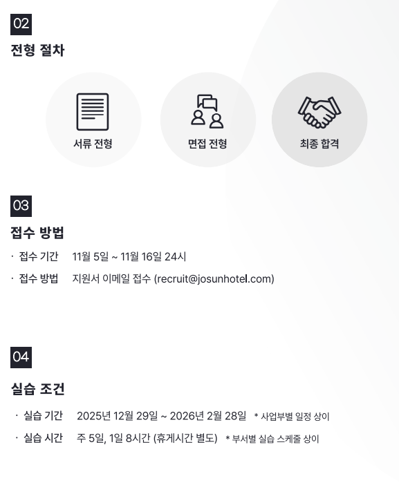 - 지원방법: 이메일 지원 (recruit@josunhotel.com)