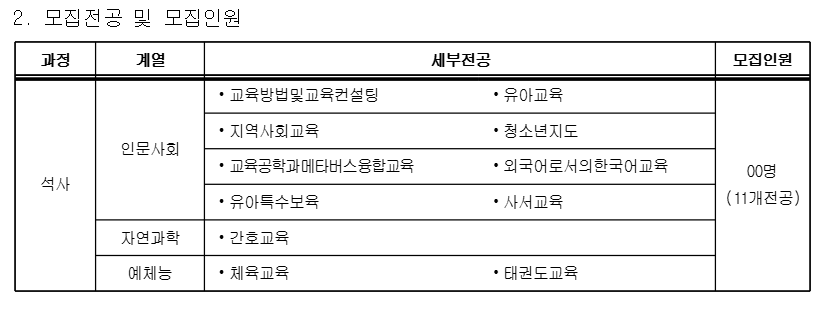 2026학년도 전기 교육대학원 신입생 추가모집 일정 알림