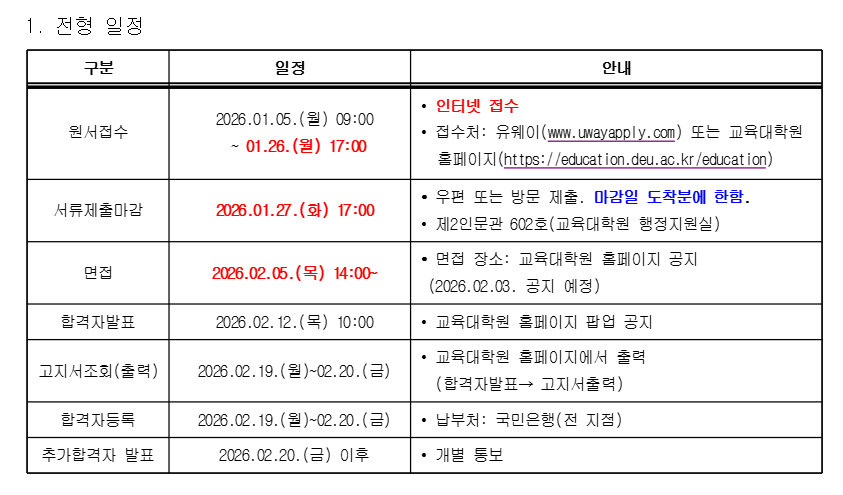 [2026학년도 전기 교육대학원 신입생 추가모집 일정 알림]