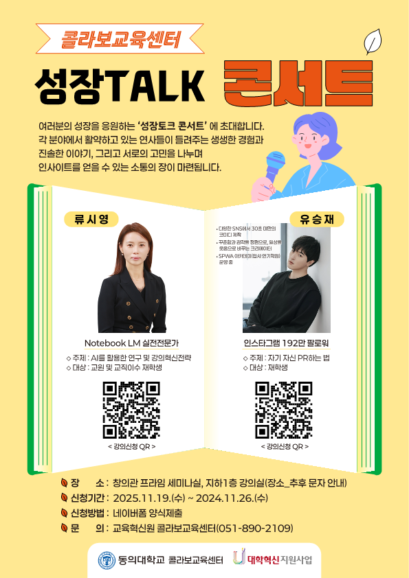 콜라보교육센터에서는 함께 성장 페스티벌의 일환으로 성장TALK콘서트를 진행합니다.