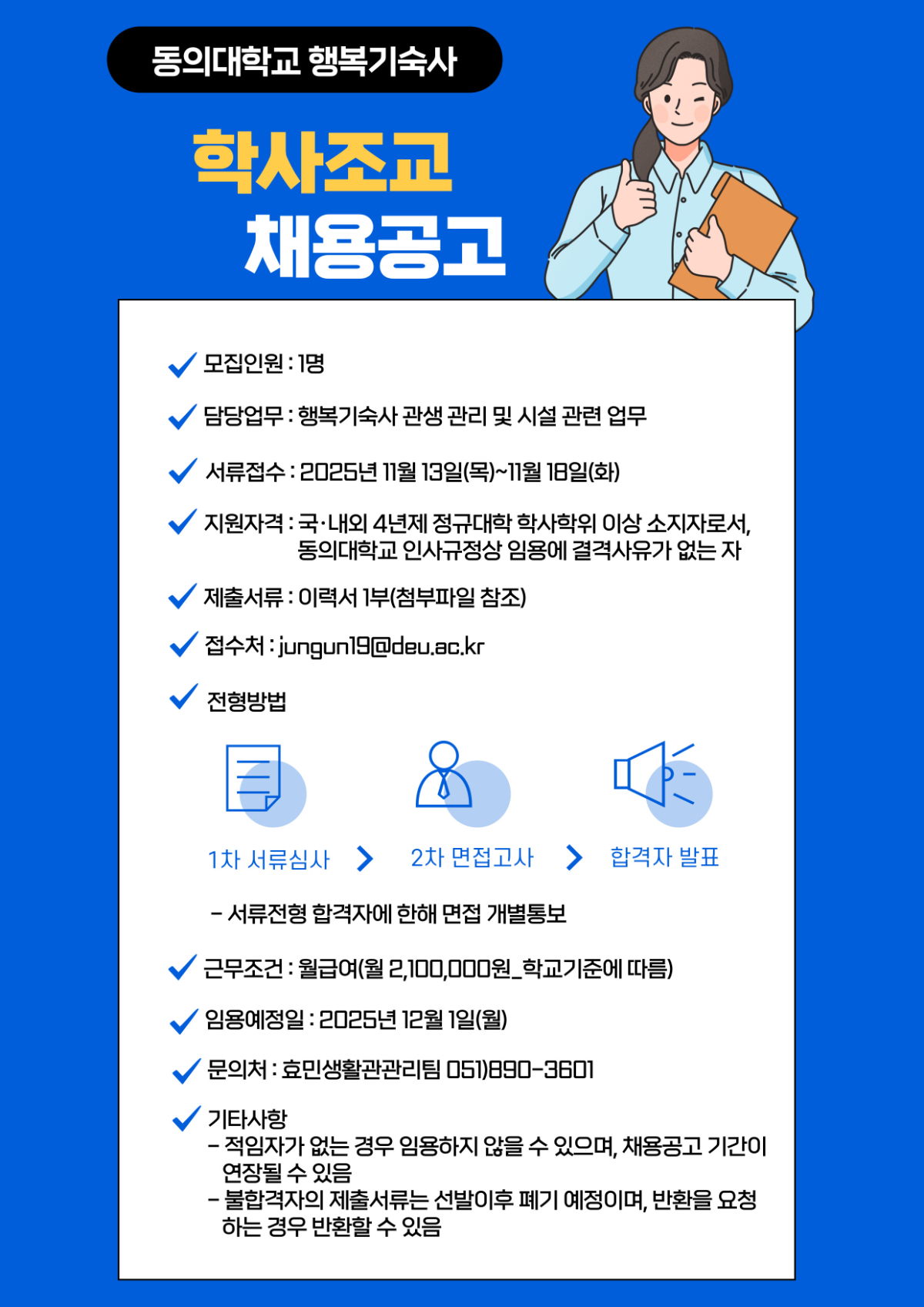 동의대학교 효민생활관관리팀 학사조교 모집 안내